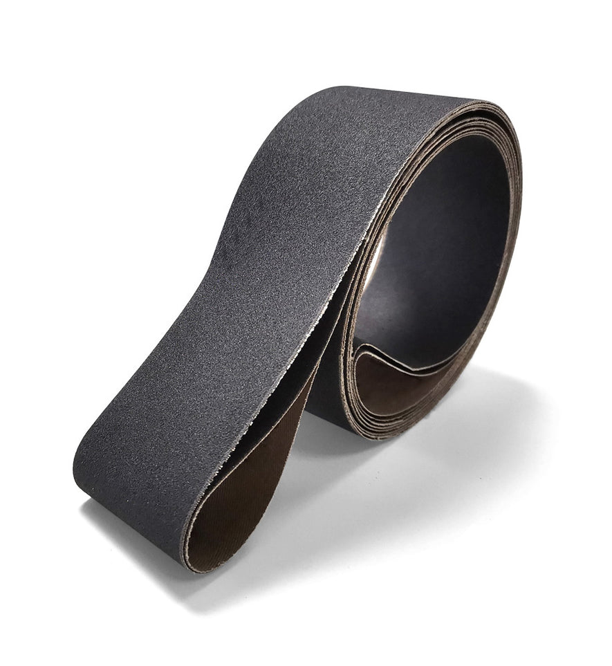 Silicon Carbide Sanding Belt is characterized by high cutting power and a very fine scratch pattern. Silicon carbide (SiC) is an extremely sharp abrasive grain with needle like cutting surface that easily breaks away to reveal more sharp edges. This sharp characteristic makes silicon carbide sanding belts perfect for sanding objects that are pressure and heat sensitive such as stone, granite, marble, cement, and glass, in addition to epoxy, resin, paint, fiberglass, plastic, rubber and some non-ferrous metals (aluminum, titanium, bronze, brass, etc.). It is commonly used to remove various coatings such as adhesives or paints. These belts may be used for either wet or dry sanding applications as they are waterproof and oil resistant. Although Silicon Carbide is a very sharp abrasive, it is also very friable, which means the grains easily break down and fracture. This high friability makes silicon carbide ideal for light pressure applications that require consistent scratch patterns but also makes it not as long lasting as other abrasive grains. Under even light pressure, Silicon Carbide cuts fast and is great for leaving a uniform finish. Popular uses for the silicon carbide sanding belts include concrete prep work (sanding and grinding floors and walls) in addition to floor coating removal, which may include glue, urethane, epoxy and mastics. Popular industries for silicon carbide sanding belts include but are not limited to construction, fasteners, plumbing, marine, paint, floor preparation, metalworking, masonry, welding and ship building.