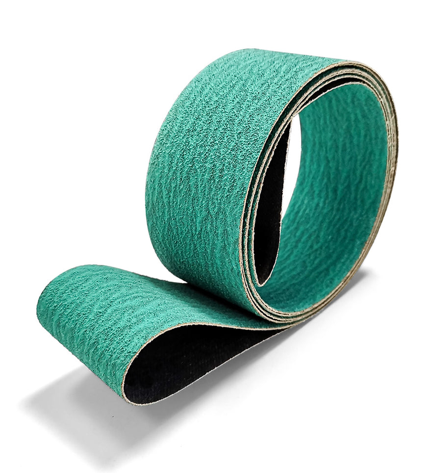 The premium dense zirconia grains on wide sanding belt were formulated for aggressive and heavy stock removal applications while the open coated characteristic allows it to grind on softer materials without loading. Due to the self-sharpening properties of zirconia, it will cut faster and more consistently for a longer duration of time than aluminum oxide alternatives. The zirconia grains can last 2-3 times longer than aluminum oxide grains on belts when being used for heavy-duty, aggressive applications.